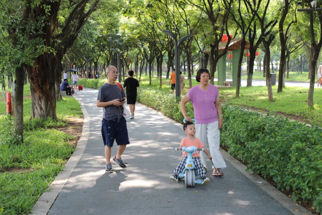走进东坑农业园,阳光透过稀疏的树叶洒下斑驳的光影,园内的小径上,随处可见运动的身影。有慢跑的年轻人,步伐矫健,汗水在阳光下闪烁;有结伴散步的市民,边聊天边散步,脸上洋溢着惬意的笑容。“秋天天气没那么闷热,东坑农业园的空气又好,特别适合出来运动。”正在进行晨跑的李先生说道,“换季的时候人容易犯懒,出来跑跑步,活动活动筋骨,感觉整个人都精神了。”