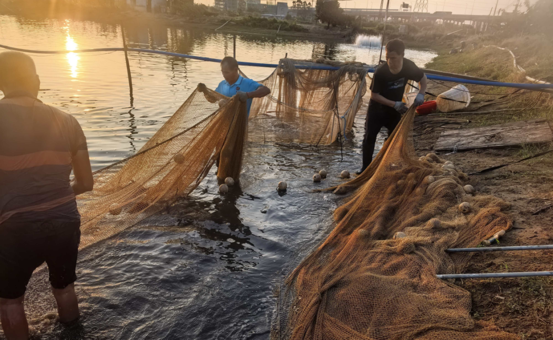 “这是今年第二批虾,7月29日投的苗,国庆就开始卖了,现在已经卖出去6万斤,照这节奏,到11月中旬就能收尾!”张胜仔忙得笑意盈盈,一会儿帮着工人拉网,一会儿跟采购商核对订单。他表示今年分两茬科学投苗,3月25日投放的第一茬虾,7月已顺利全部上市,两茬养殖无缝衔接,让塘里的“收益”没断档。