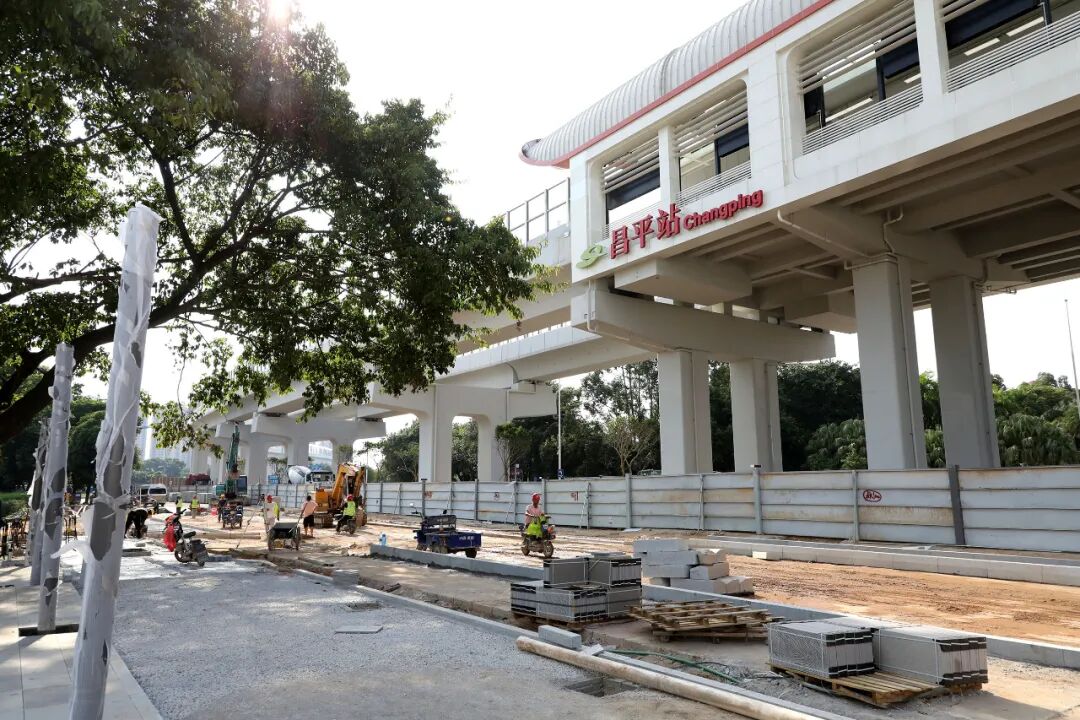 地铁1号线一期起于东莞西站,终于梅塘站,线路总长57.46公里。途经望牛墩、洪梅、道滘、万江、南城、东城、大岭山、松山湖、大朗、黄江10个镇街(园区),地铁1号线途经道滘镇与西部干道重叠,底下为西部干道,架高层为1号线段,并设有两个站点厚德站与昌平站。目前,两个站点正在紧张施工,其中路面浇筑等主体工程已经完成,施工现场电气、排水、绿化等配套工程的各个作业面正在有序推进。