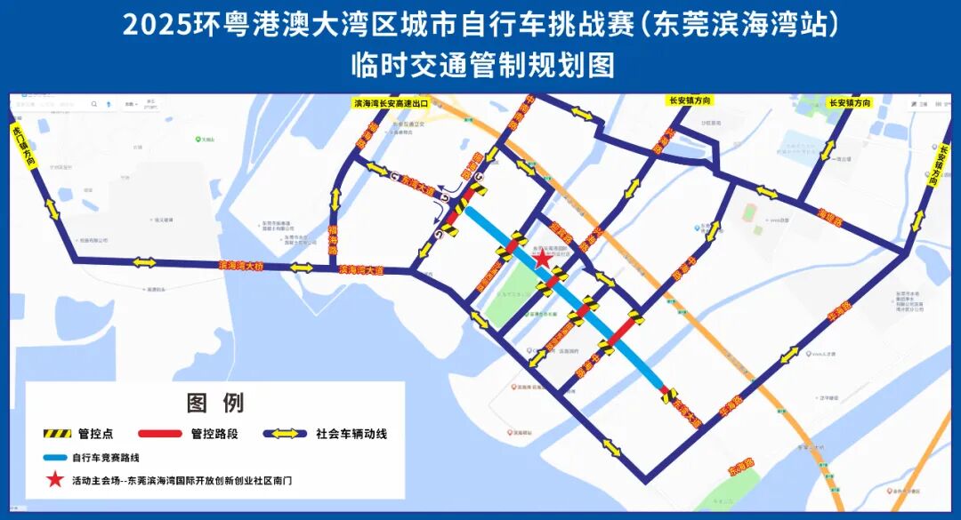 10月19日,“喜迎十五运 活力大湾区”2025环粤港澳大湾区城市自行车挑战赛(东莞滨海湾站)将在滨海湾新区举行,部分道路将实施临时交通管制。