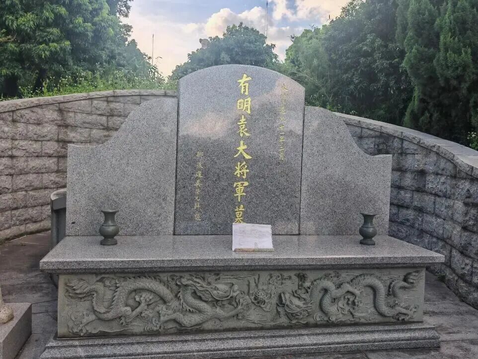中秋节,在位于东莞石碣镇的东莞市袁崇焕纪念园,工作人员发现了一张遗留在袁督师衣冠冢前的漫画。