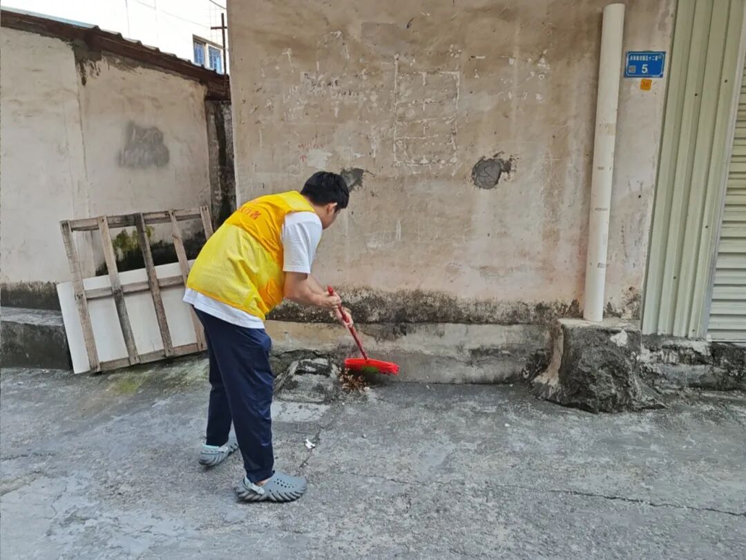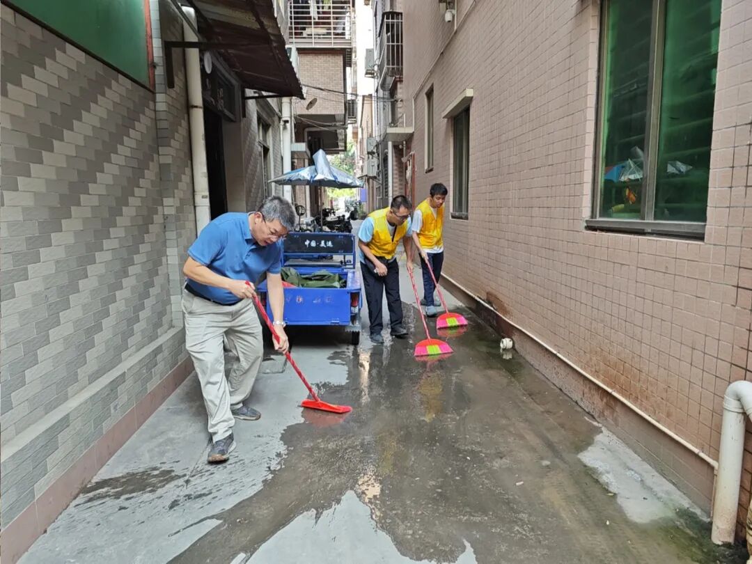 赤岗社区组织干部群众深入社区南坊小组的背街里巷、房前屋后、闲置地、绿化带等,进行垃圾清扫和积水清理,全力美化社区环境卫生,清除蚊虫孳生地,降低疫情传播风险,守护社区群众生命安全和身体健康。