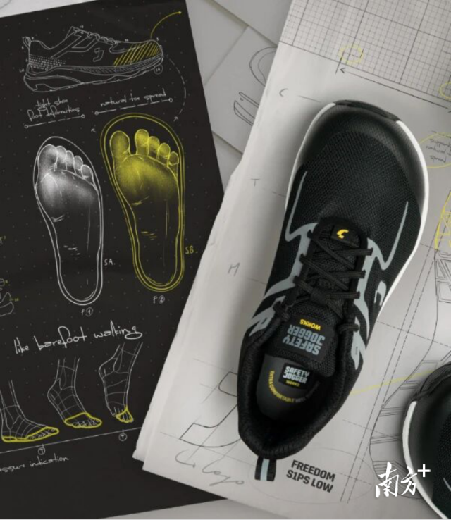 在肖恩的细致介绍下,安东尼对葛天那的Safety Jogger品牌下的FREEDOM系列安全鞋表现出浓厚兴趣。该新品系列采用了解剖学原理设计,专为支撑脚部自然运动而研发,目前正处于专利申请阶段。