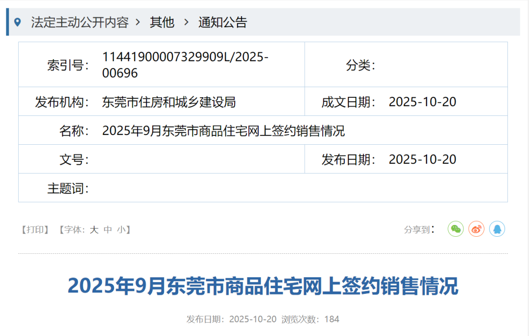 小伙伴们注意!东莞最新房价出炉。10月20日,东莞市住房和城乡建设局官网公布《2025年9月东莞市商品住宅网上签约销售情况》。