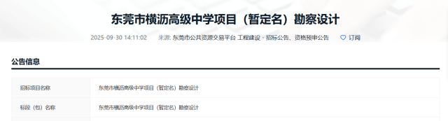 近日,广东省公共资源交易平台披露的信息显示,暂定名“横沥高级中学”的项目已进入勘察设计阶段,这意味着东莞“牛镇”的横沥,将告别没有普通高中的历史。