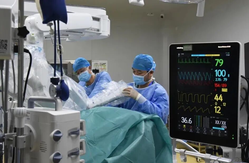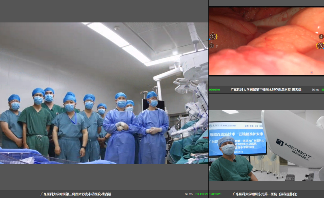 ▲凭借5G网络“千里眼”与机器人“万能手”,东莞专家远程操控,成功完成三师首例5G远程腔镜机器人辅助经腹腔镜下左侧肾盂输尿管成型术。
