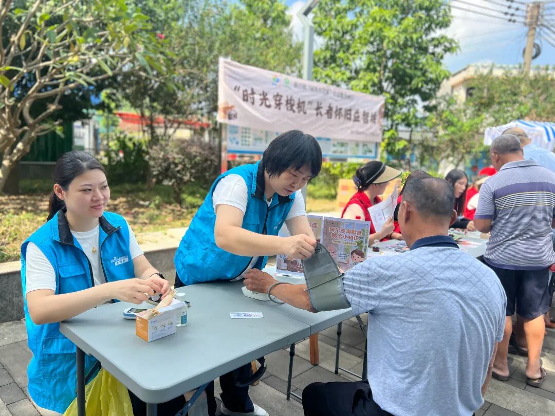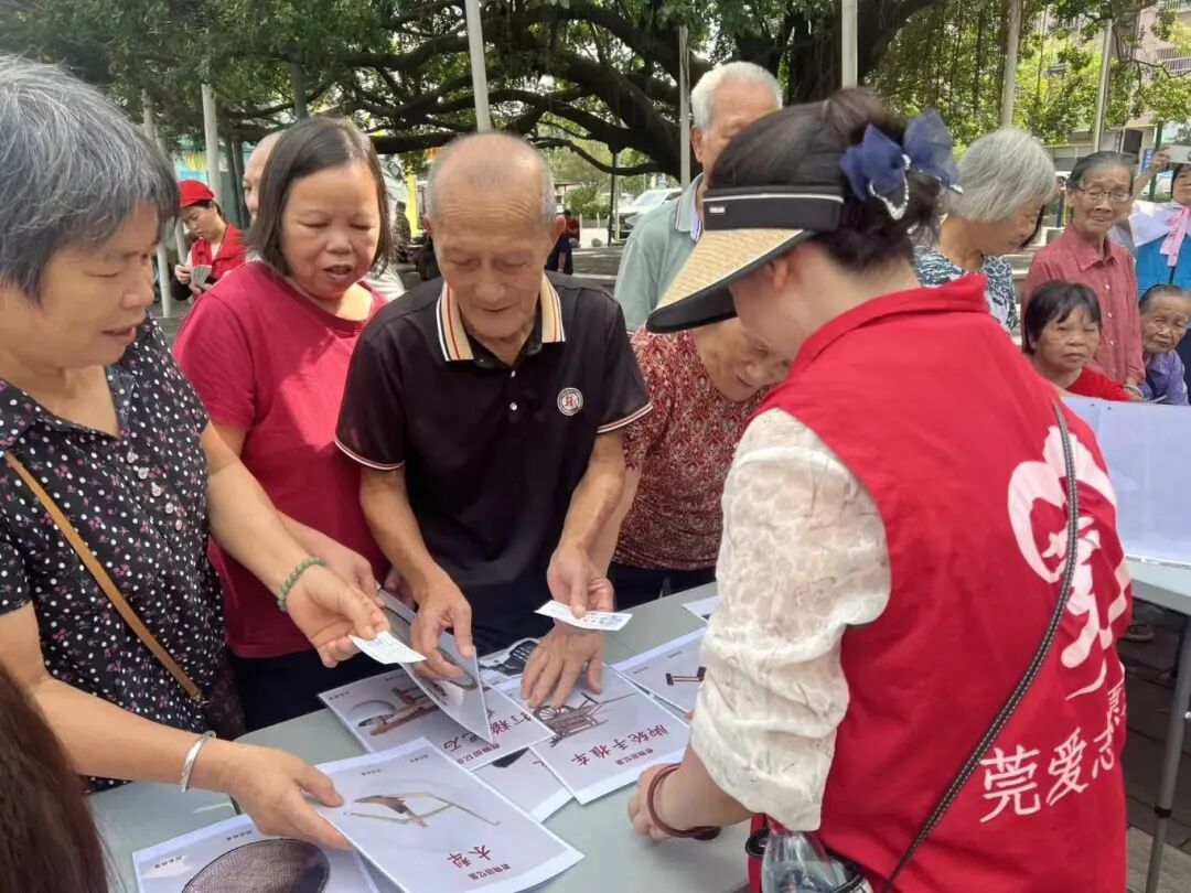 现场设置的义诊科普、知识问答、怀旧游戏等多个特色摊位,吸引众多居民积极参与,人气十足。在义诊科普区内,不仅有黄江医院与黄江镇社区卫生服务中心的医护人员为长者提供测量血压、血糖服务,还有双百社工用通俗易懂的语言讲解阿尔茨海默症的早期症状、科学预防方法等。