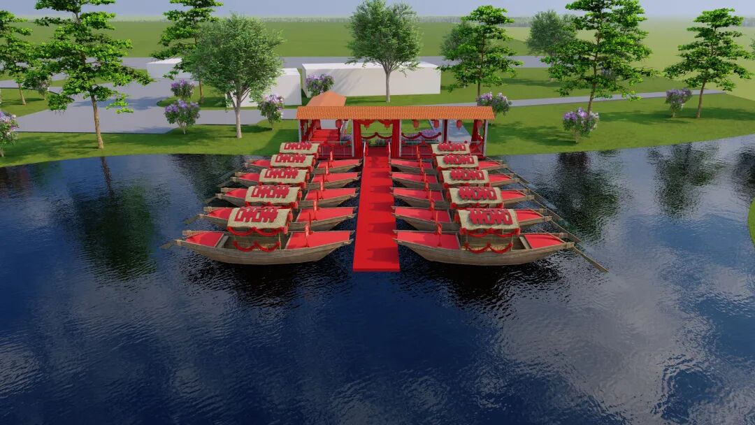此次婚礼路线,从穗丰年水道进港中路驿站为起点,串联起芳草水寮及疍家文化艺术中心,沿途碧水绕船轻唱,新人沐浴爱河间,让这方独特的水道见证彼此长长久久的誓言,让爱意随水波绵延。