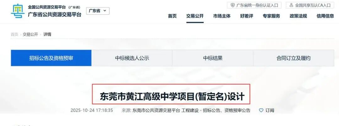 近日,广东省公共资源交易平台发布“东莞市黄江高级中学(暂定名)设计”招标公告,标志着这所市直属公办高中正式启动前期工作。