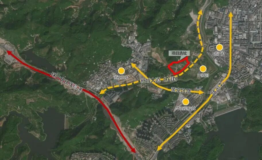 项目位于黄江镇中心地区,东南侧毗邻在建新城大道。建设总工期预计为38个月,计划于2025年7月启动前期工作,2026年9月动工,2028年7月底前完工,并于2028年9月正式投入使用。