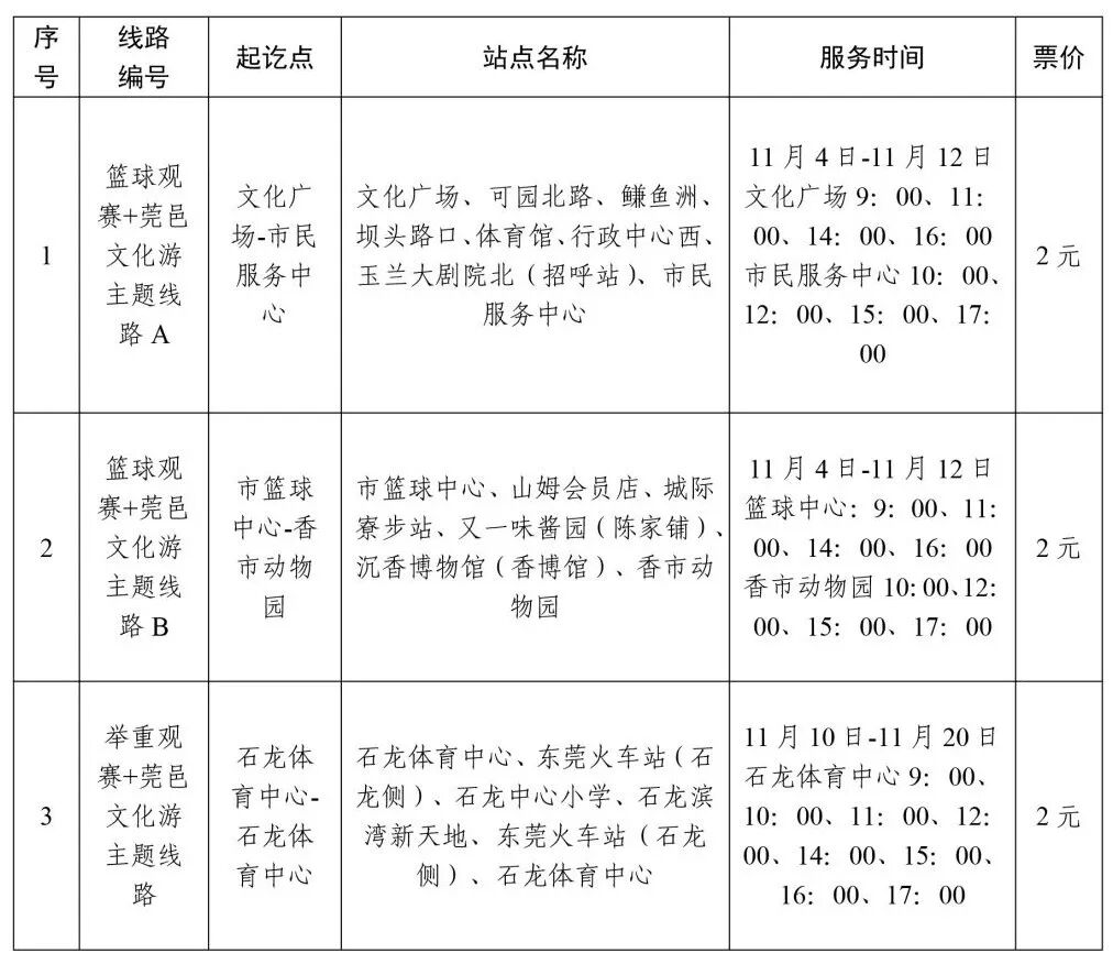 为了让大家更方便地到达赛场,东莞巴士开通了多条免费接驳专线。此外,还推出3条“赛事+观光”文旅专线,方便大家在看比赛之余游览东莞!