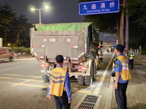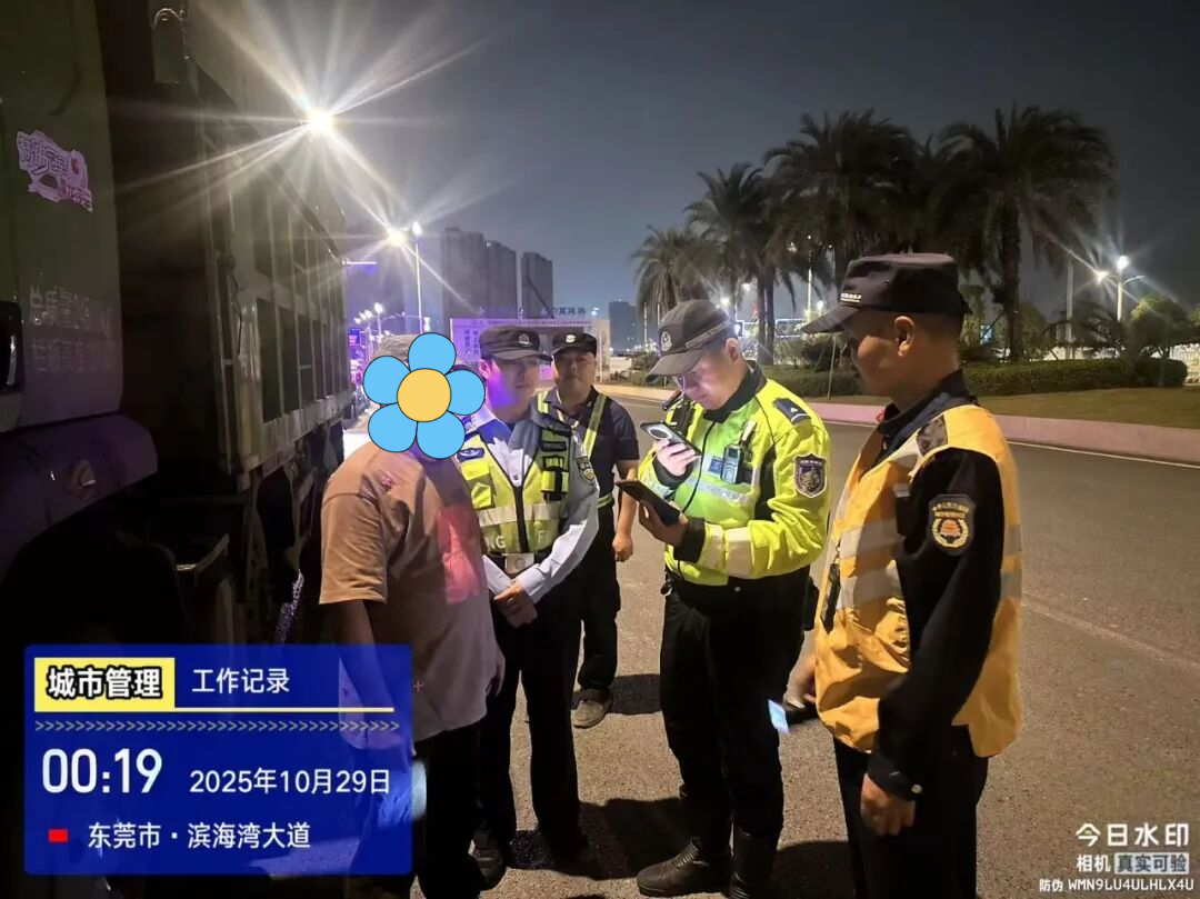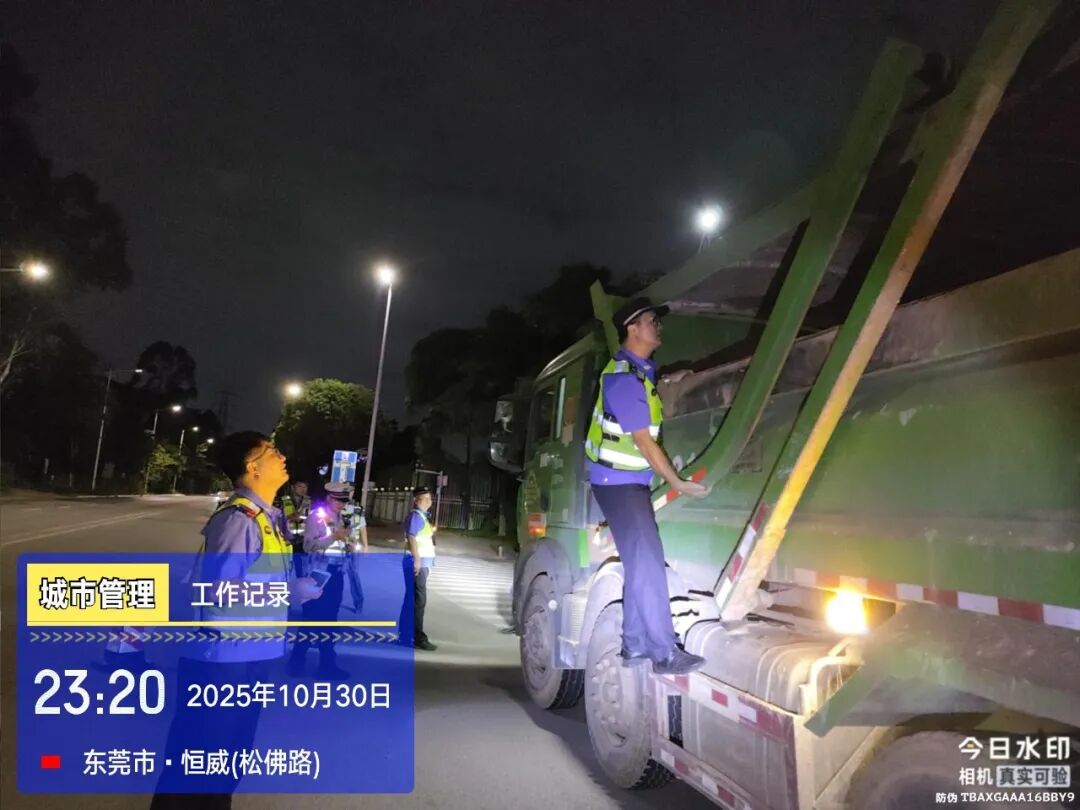 10月30日晚,全市统一集中执法行动在34个镇街(园区)同步启动。各城管分局联合公安、交通,在辖区重点路段设立固定检查点,严查未取得核准许可、未密闭运输、扬撒滴漏等违法违规行为。同时,在市局的指导下,长安、塘厦、凤岗、黄江、中堂、石碣、石龙、桥头、企石、谢岗等10个毗邻广州、深圳、惠州的镇街开展市际联动执法,强化区域协同,严厉打击跨区域偷运偷倒行为,进一步织密联防联控网络。