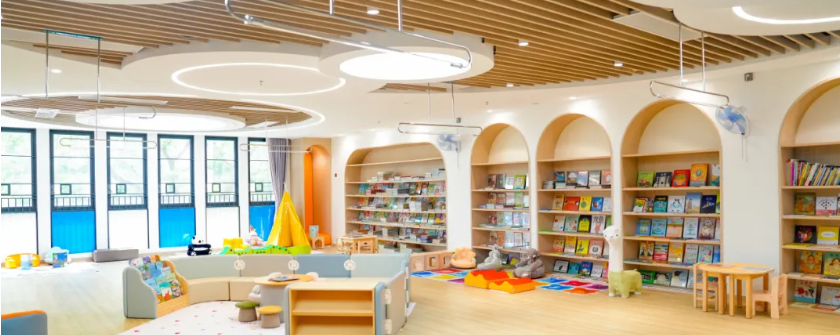 幼儿园以自然、清新、简洁为主,设置图书室、音体室、木工坊以及创客室等功能场所,打造沙池、水池、跑道等户外场地,充分满足孩子的动手实践、探索学习等需求。