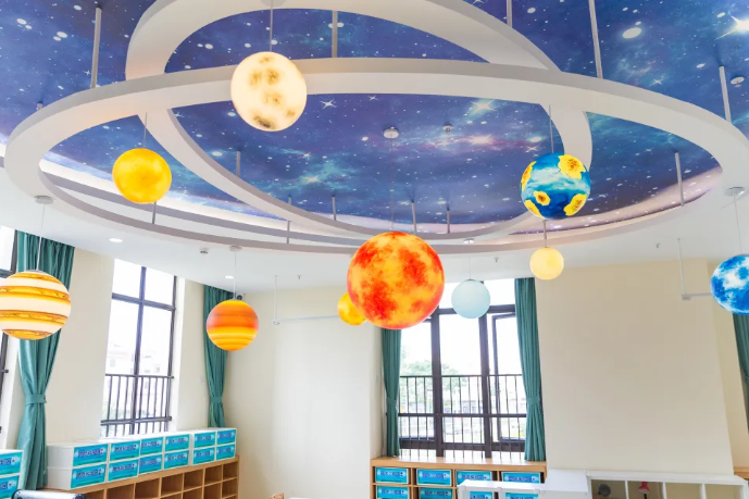 幼儿园配备标准课室以及美术室、图书室、创客室、科学室等功能室,配置专业儿童运动场,为孩子打造清新、干净、明亮、温馨的教学空间,提供多元化的学习和探索空间。