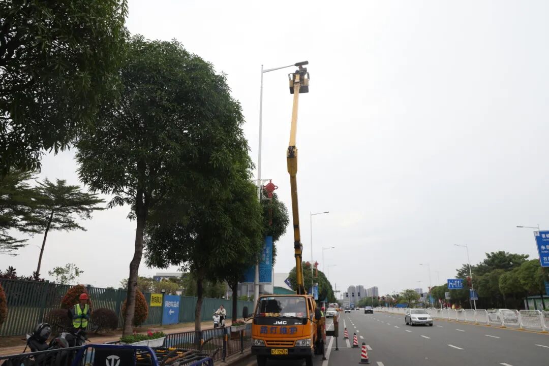 寮步城管分局提前部署、精细管理,重点围绕市容环境、市政设施、绿化养护、路灯养护检查等方面开展保障工作。通过加大对东莞篮球中心及其沿线区域的巡查力度,增派环卫作业力量,实施路面深度清洁与绿化植被精心管护,有效提升区域环境的整洁度与美观度。同时,组织专业技术人员对市政照明设施进行全面检修,切实保障路灯等市政设施正常运行。