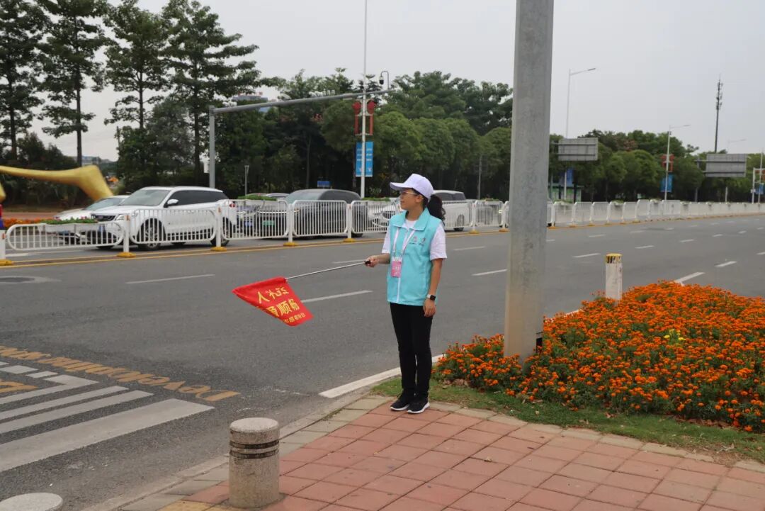 在东莞篮球中心片区的各主要路口,志愿者的身影格外引人注目。他们手持文明劝导小红旗,积极投身于文明劝导、交通指引等志愿服务工作,用热情的笑容迎接每一位往来市民,成为赛场外一道温暖的城市风景线。