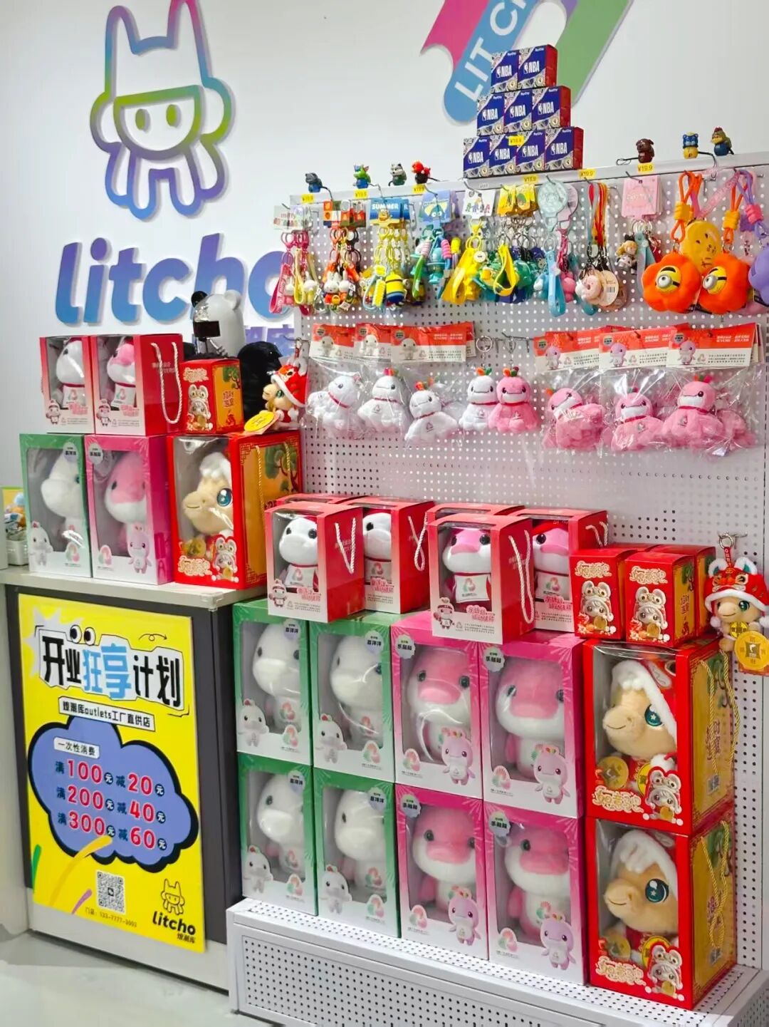燎潮库LITCHO潮玩折扣店位于石排潮玩中心后面的潮玩商街,是石排政府指导打造的专业潮玩文化平台。这里以厂家直供的折扣价为特色,致力于让潮玩走进大众生活,同时聚焦潮流、艺术与文化融合的消费体验,精选各类优质潮玩产品。目前店内已设置十五运周边专柜,陈列售卖“喜洋洋”“乐融融”系列周边。