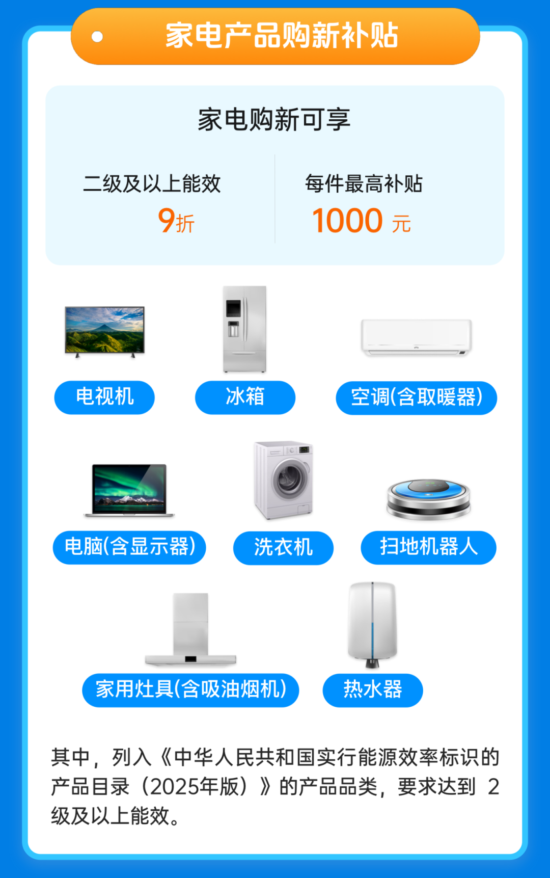 (1)8类家电产品:电视机、冰箱、空调(含取暖器)、电脑(含显示器)、洗衣机、扫地机器人、家用灶具(含吸油烟机)、热水器