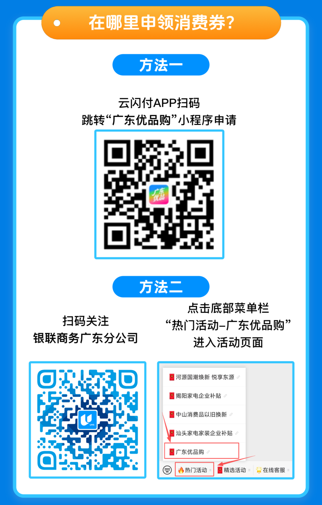 一、个人消费者通过“云闪付APP”或银联商务广东分公司公众号进入“广东优品购”运营平台,填写个人信息(身份证号、姓名、手机号)完成实名认证注册。注册成功后,进入指定活动申领页面,按要求申领相应品类的消费券,消费券有效期为3天。