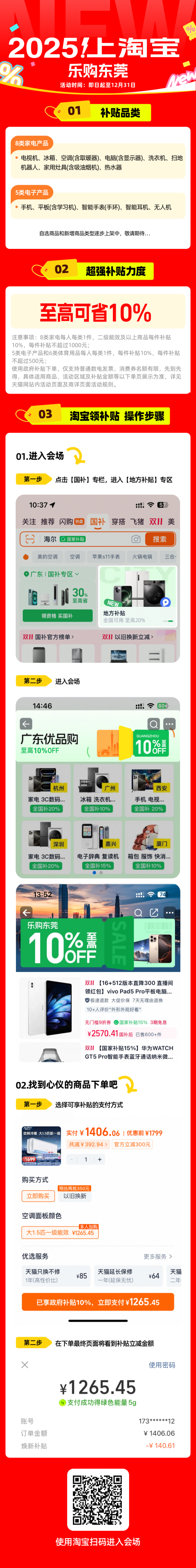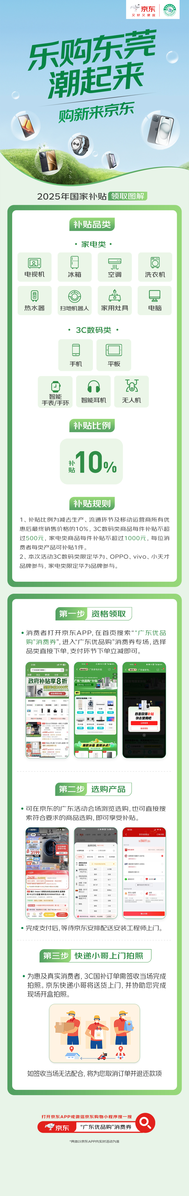 乐购东莞联合线上各大平台和线下多家门店发放“广东优品购”消费券,本次消费券覆盖数码潮物、智能家电、运动装备、特色优品,超20类商品享10%政府补贴,最高立省1000元!