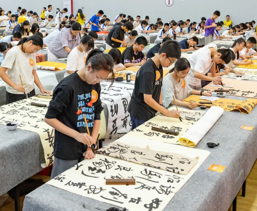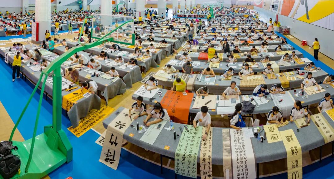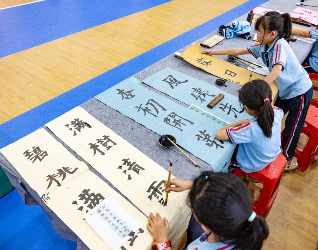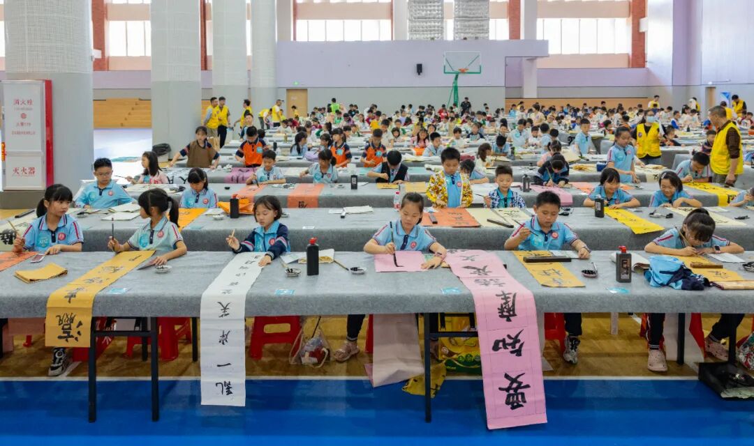 11月8日上午,虎门第四中学篮球场内翰墨飘香,虎门镇近千名中小学生在这里相聚一堂,参加虎门镇2025年中小学生现场书法大赛。