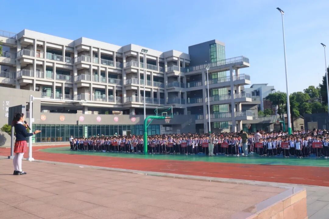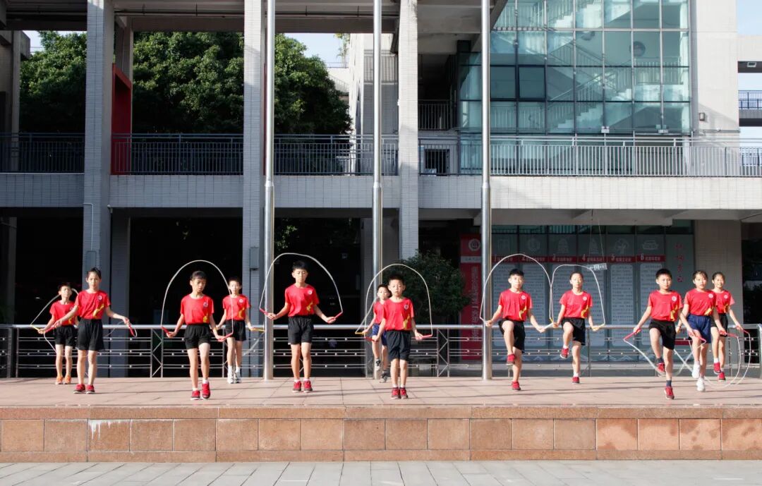 学生代表以《全域文明迎全运,人人当好东道主》为题发表演讲,分享对文明行为的理解,号召同学们从文明有礼、有序交通、爱护环境等小事做起,展现莞城少年的良好风貌。随后,活力四射的跳绳表演拉开帷幕,同学们组成整齐方阵,随着音乐节奏,跳绳翻飞、步伐轻盈,展现出蓬勃朝气。