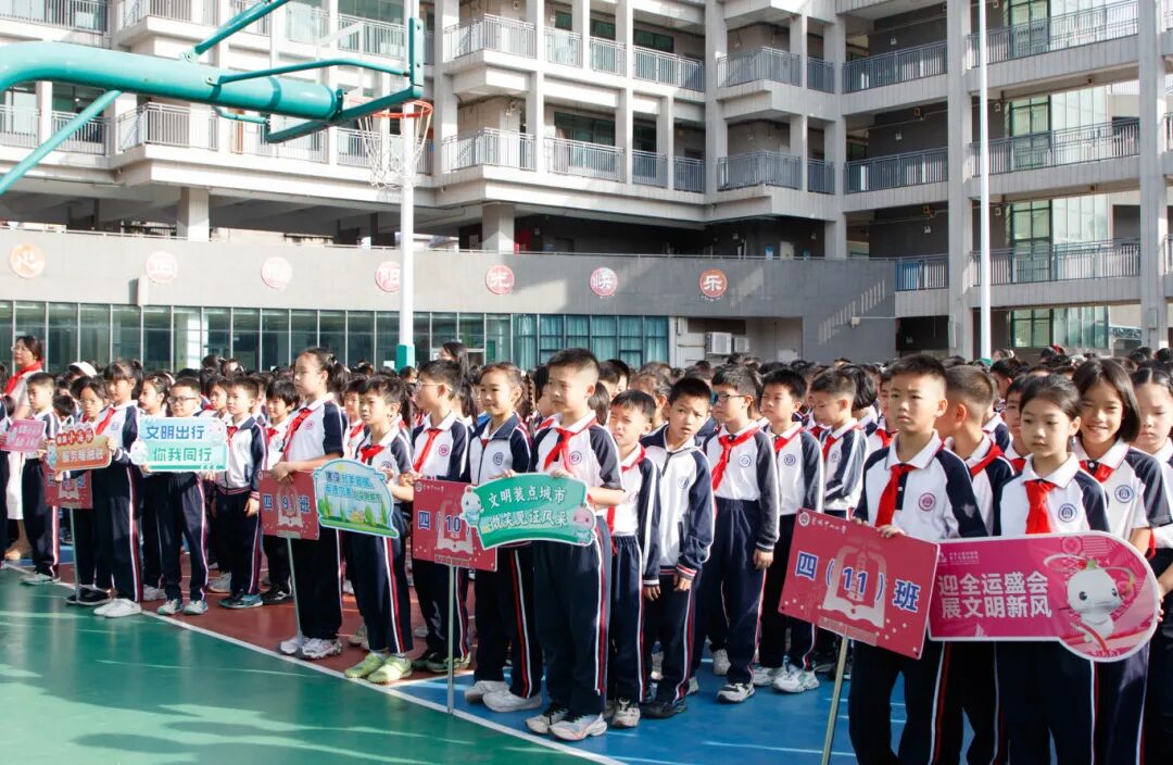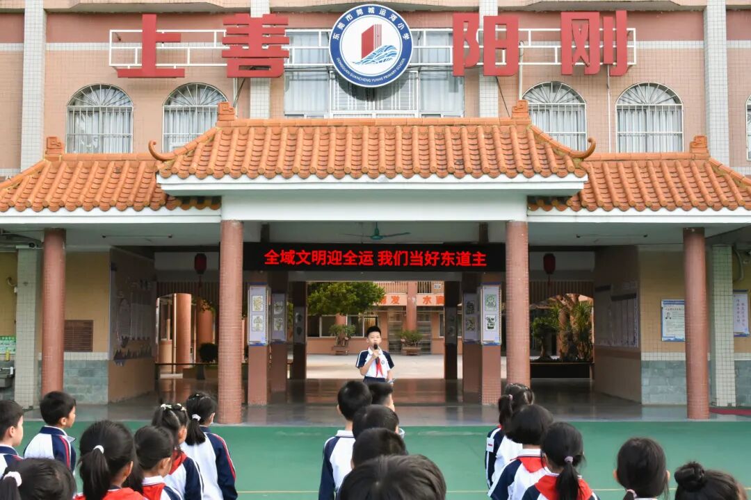 作为十五运会的东道主,东莞正以文明友善的精神风貌展现城市魅力。为营造“全域文明迎全运”的浓厚氛围,连日来,莞城街道持续开展形式多样的文明实践活动。11月10日,莞城街道以“全域文明迎全运,人人当好东道主”为主题,在辖区各小学开展主题嘉年华活动,通过“升国旗+演讲+表演+主题课堂”等丰富形式传递文明新风尚,引导学生争当文明 “小火种”,切实用实际行动点亮城市文明,为十五运会营造浓厚氛围。