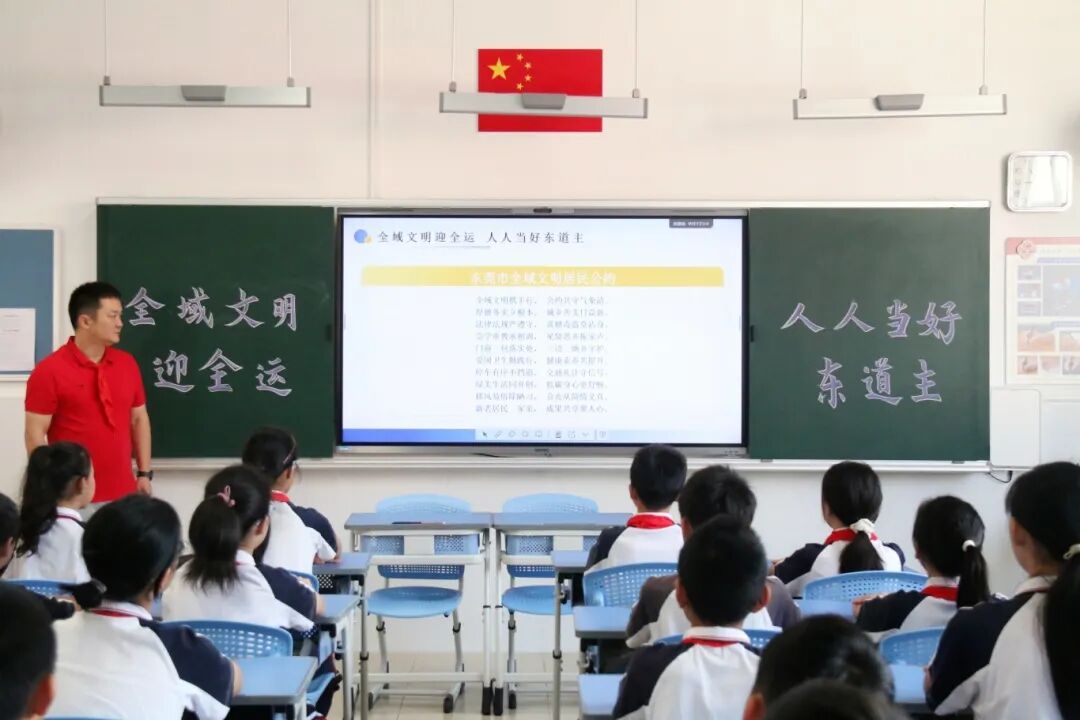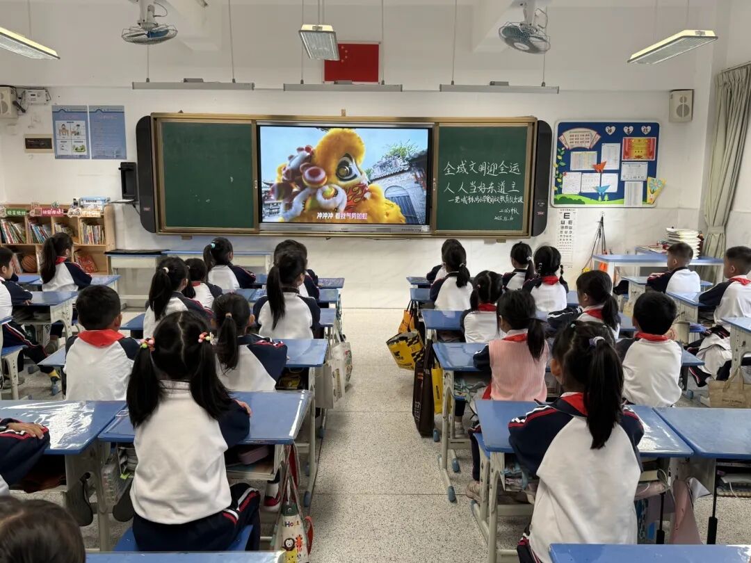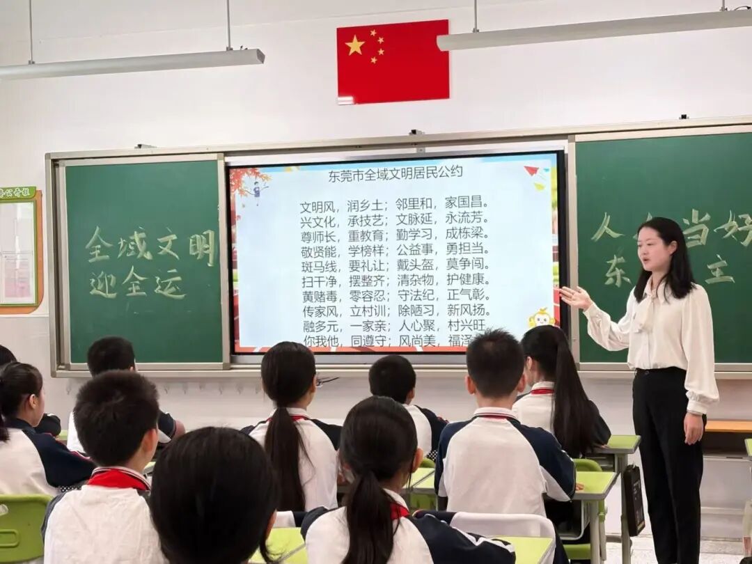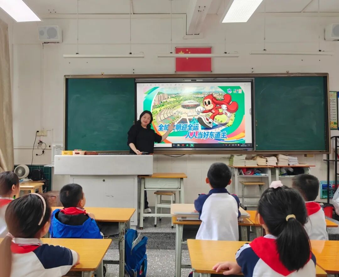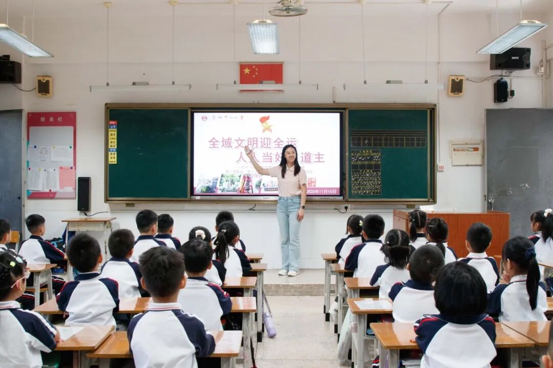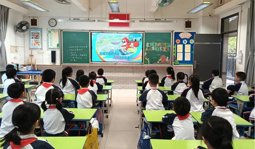 同一时间,莞城街道辖区其他8所小学也同步开展主题活动。升旗仪式凝聚共识、国旗下讲话传递担当、师生合唱点燃热情、主题课堂深化认知,“全域文明迎全运”的理念深入每一所校园、每一位师生心中。