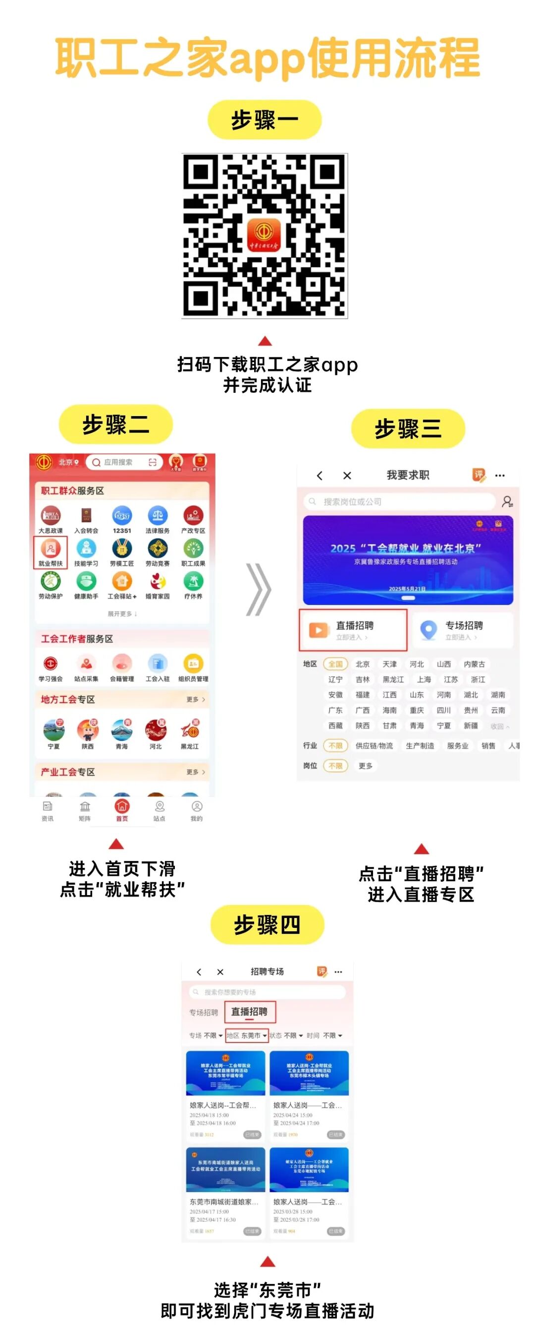 下载“职工之家APP”或进入“红海直聘”小程序,参与直播。