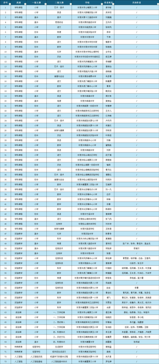 入选课程涵盖多个类别,包括学科课程46节、实验教学类16节、阅读课7节、人工智能教育2节以及特殊教育2节。凭借优异的组织成效,东莞连续两年获评省级“基础教育精品课优秀组织地区”。