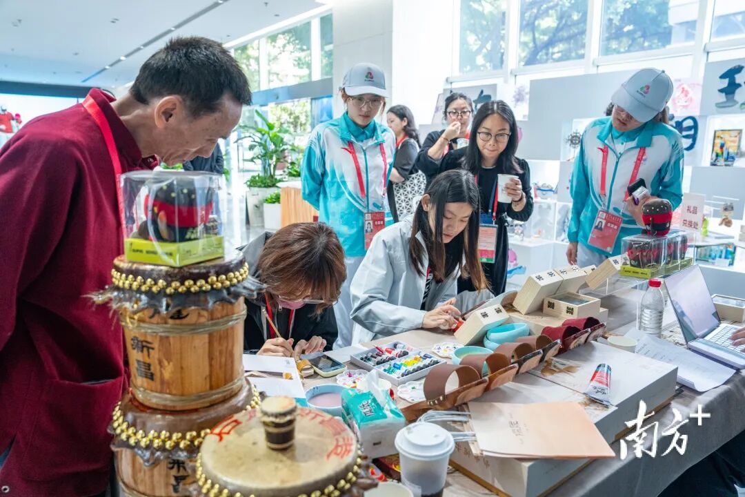 除木屐外,石龙另一项省级非遗代表性项目、与东莞龙舟文化密切相关的新昌鼓也在主媒体中心同场亮相。手工制作的迷你鼓和中鼓、一拽就能发出鼓声的小鼓挂饰都趣味十足,广受媒体朋友青睐。