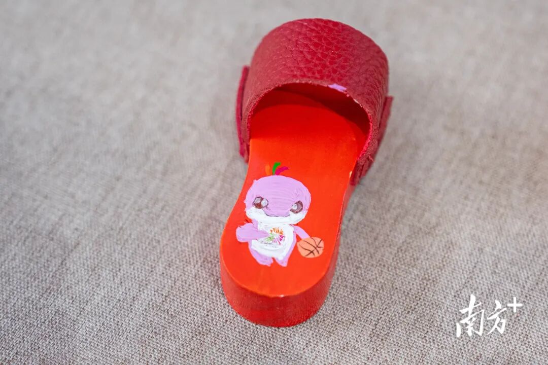 梁家聪也画了一只打篮球的“乐融融”。他介绍,木屐在传统中常用于婚庆、新年等吉庆场合,寓意“步步高升、有声有色”,“希望运动员们在十五运会赛场上也能步步高升,赛出佳绩。”
