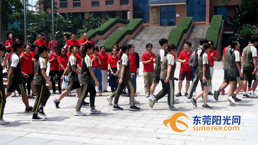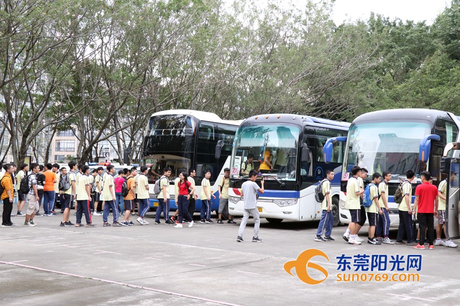 东莞七中近700名高三学子坐大巴车,在全校学弟学妹以及老师们的祝福声中前往石龙中学考场踩点