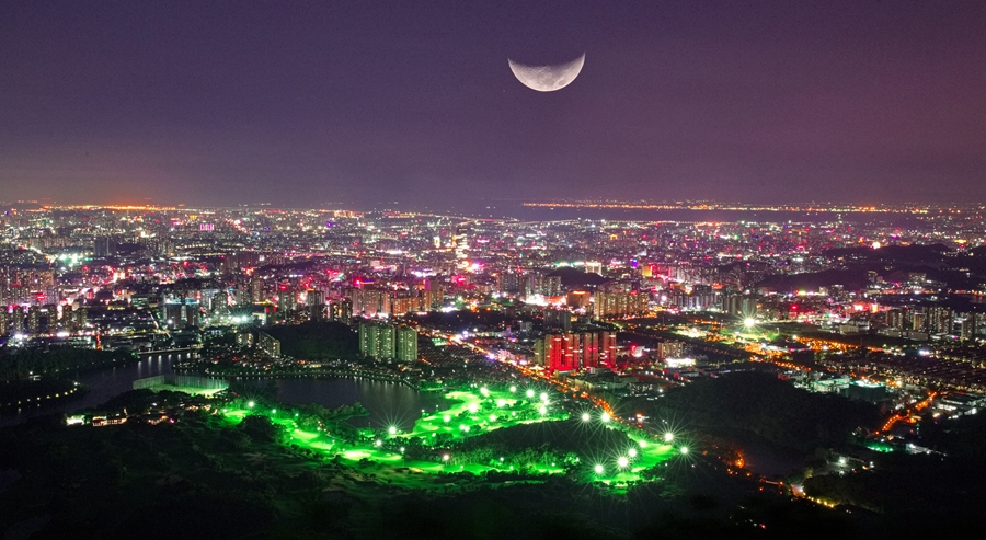 - 当夜幕降临,从莲湖绿道的上空中看到,一座座高楼大厦照射出万家灯火 2022年10月26日 11:08 分享