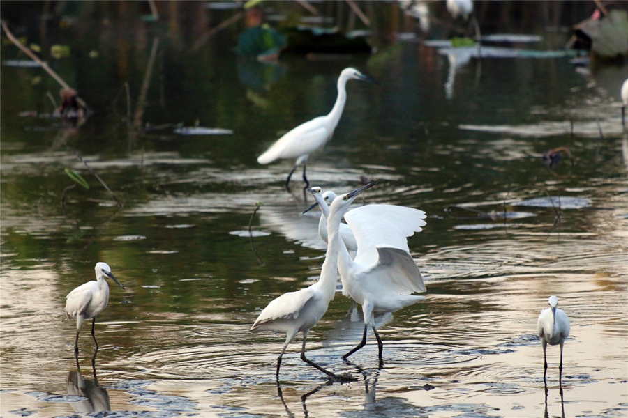 - 在道滘镇北岛公园湿地景区,成群结队的白鹭在湿地水域里觅食 2022年10月29日 08:53 分享
