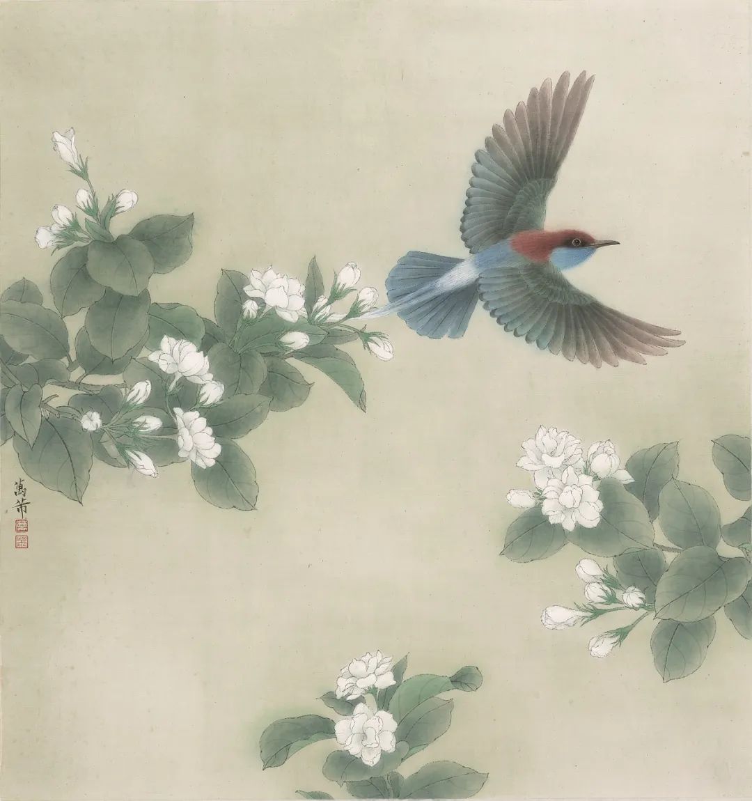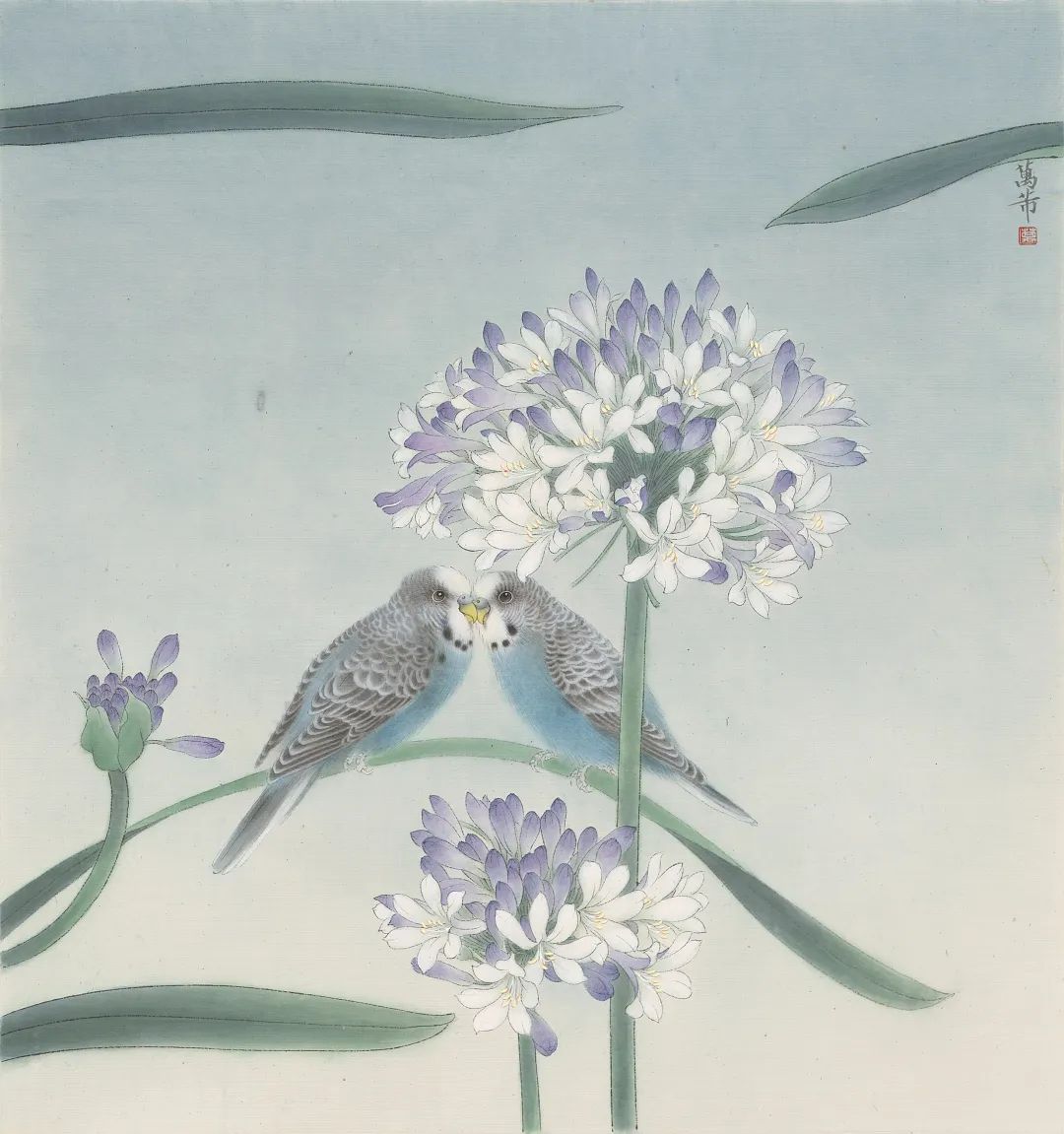 万芾是上海实力派花鸟画家,她笔下“花鸟世界”中的二十四节气,作品色彩丰富,构图现代而不失传统韵味。