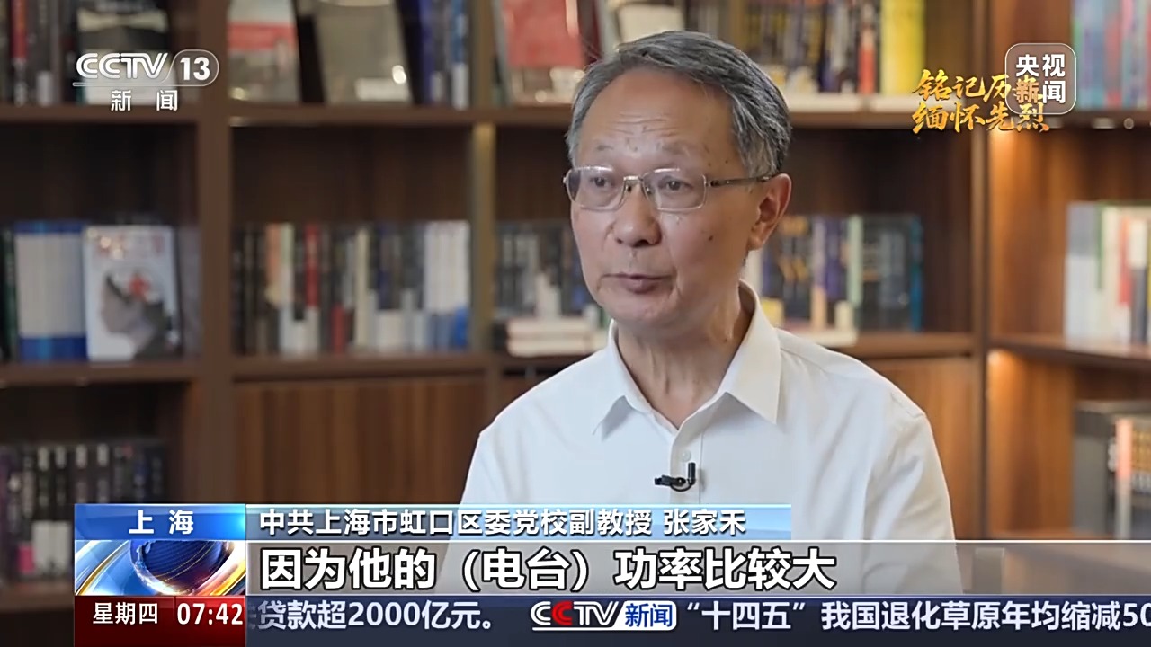 中共上海市虹口区委党校原副教授 张家禾:他们使电台功率从75瓦降到35瓦,最后降到7到15瓦之间,依然能够清晰地把信号发到陕北延安。