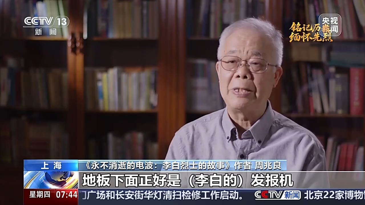 《永不消逝的电波:李白烈士的故事》作者 周兆良:敌人也没发现什么,最后要走的时候,有个日本宪兵脚一踩,踩到地板,踩断了,地板下面正好是李白的发报机。查出来了,敌人一看是发报机,马上把李白抓起来。