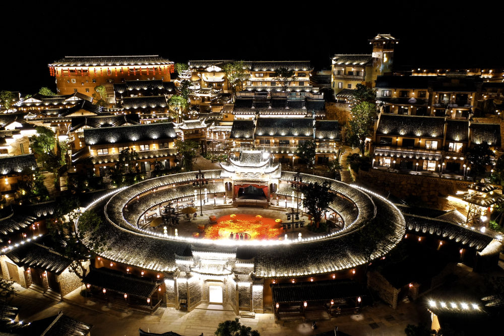 这是7月11日拍摄的望仙谷景区夜景(无人机照片)。新华社记者 刘金海 摄