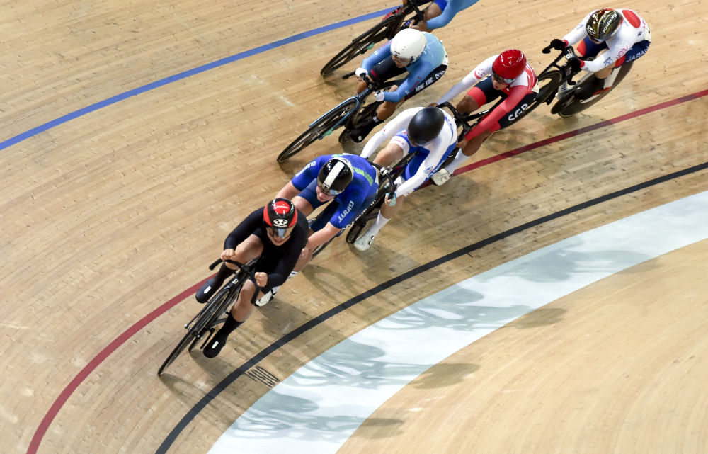 4月19日,2025香港国际场地杯暨第十五届全运会场地自行车测试赛在香港将军澳自行车馆开赛。新华社发(卢炳辉摄)