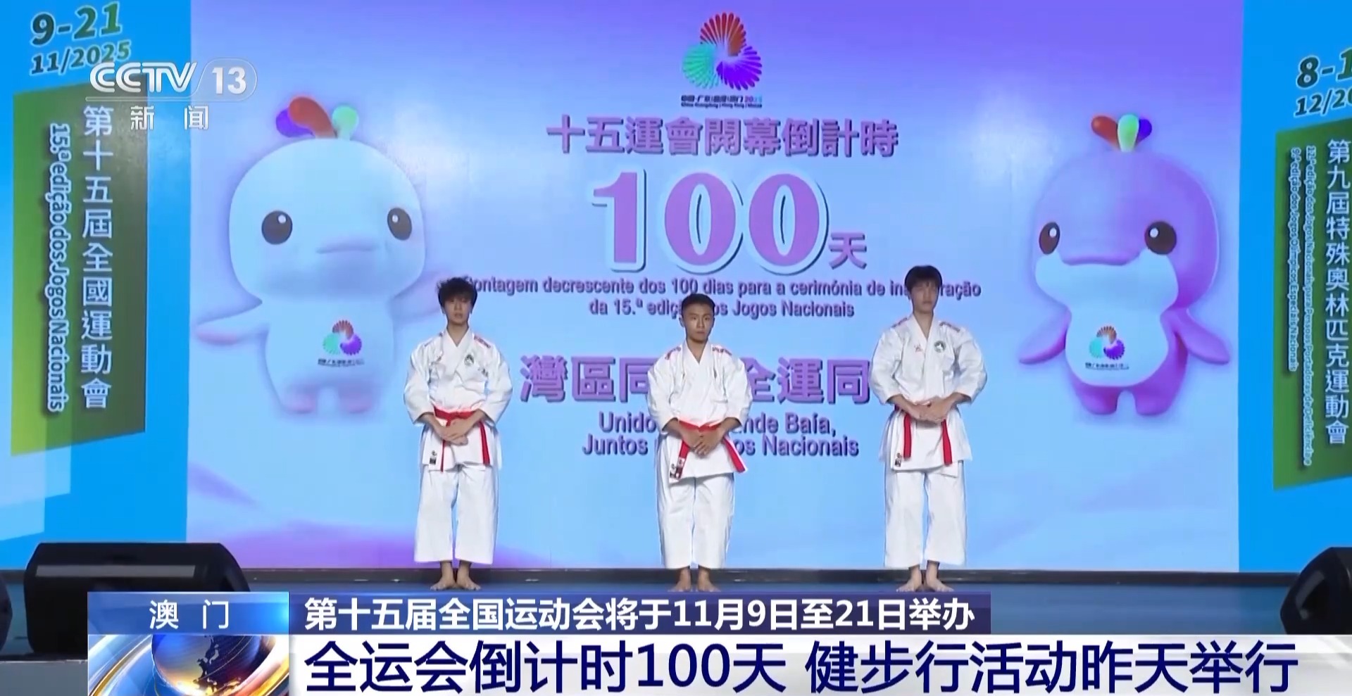 第十五届全国运动会将于11月9日至21日在粤港澳三地举办。8月1日,全运会迎来倒计时100天,澳门举办健步行等多项活动,感受全运氛围,全民迎接全运会。
