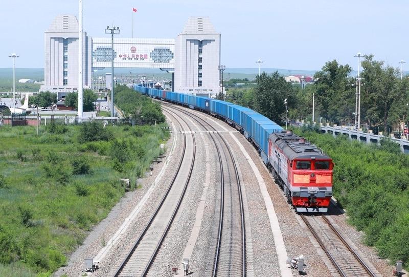 △2025年7月24日,一列满载货物的回程中欧班列通过国门驶入中国铁路哈尔滨局集团有限公司满洲里站。