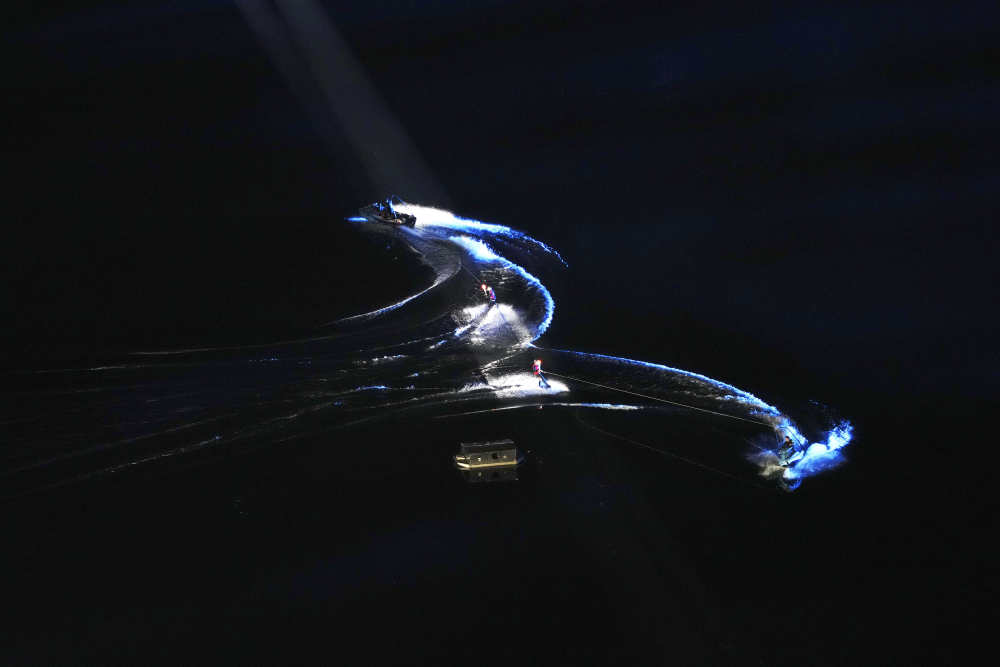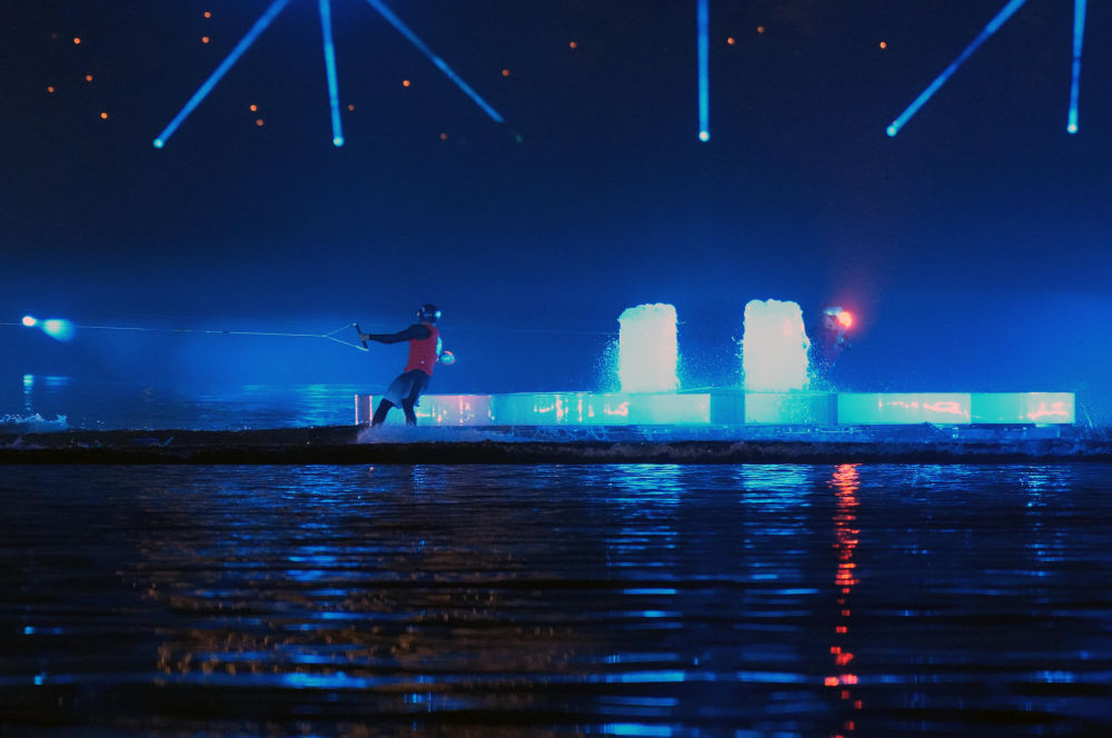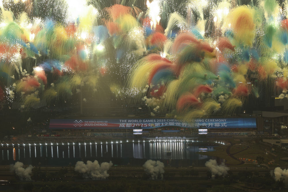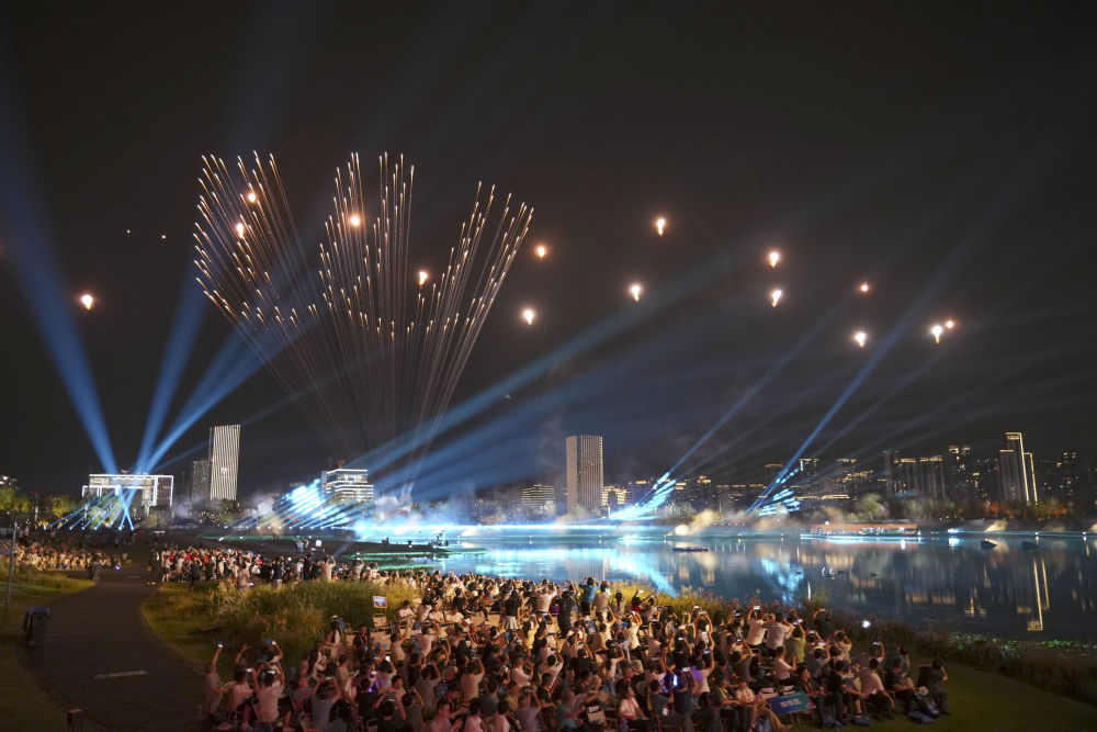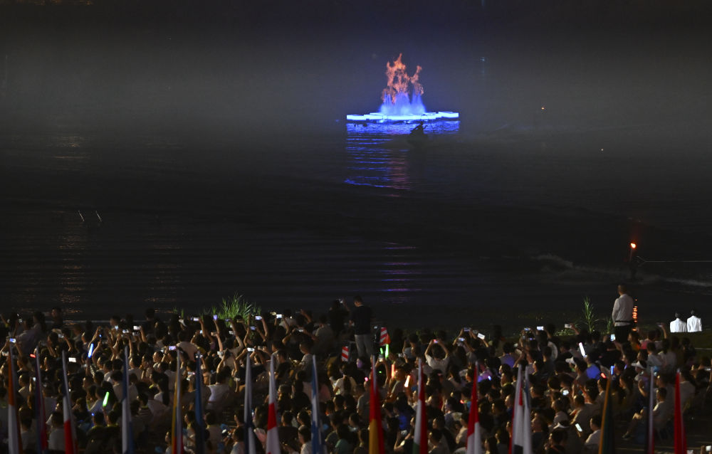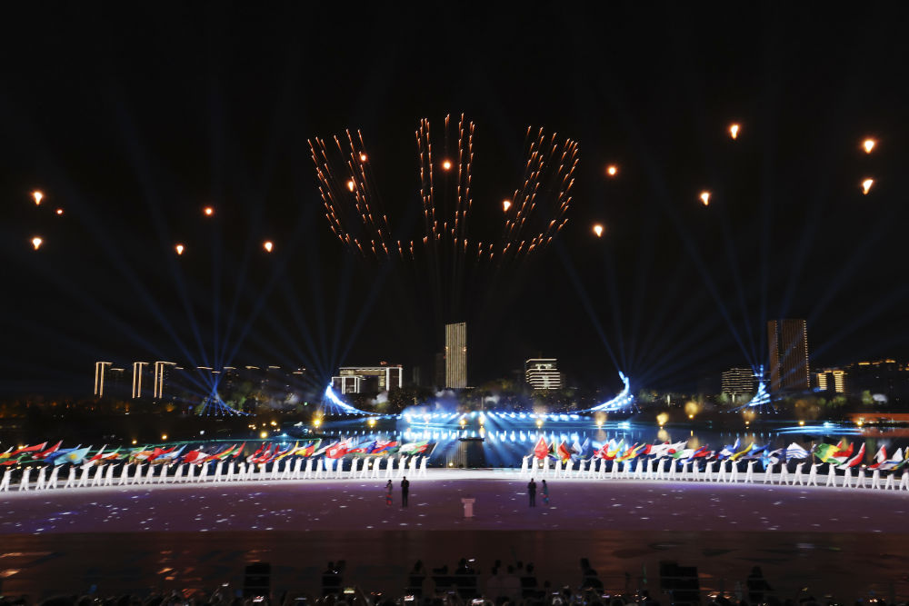 ↑这是8月7日拍摄的开幕式上的焰火表演。新华社记者 陈欣波 摄