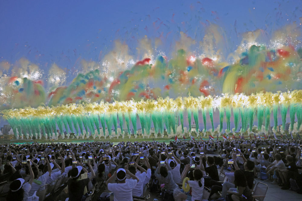 ↑这是8月7日拍摄的开幕式上的焰火表演。新华社记者 王翔 摄