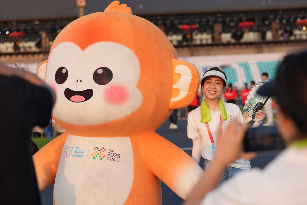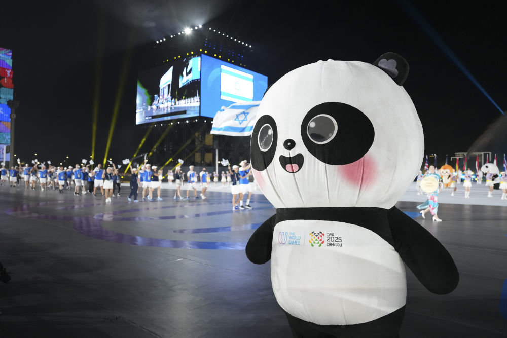 ↑ 这是8月7日在开幕式上拍摄的吉祥物“蜀宝”。新华社记者 刘坤 摄