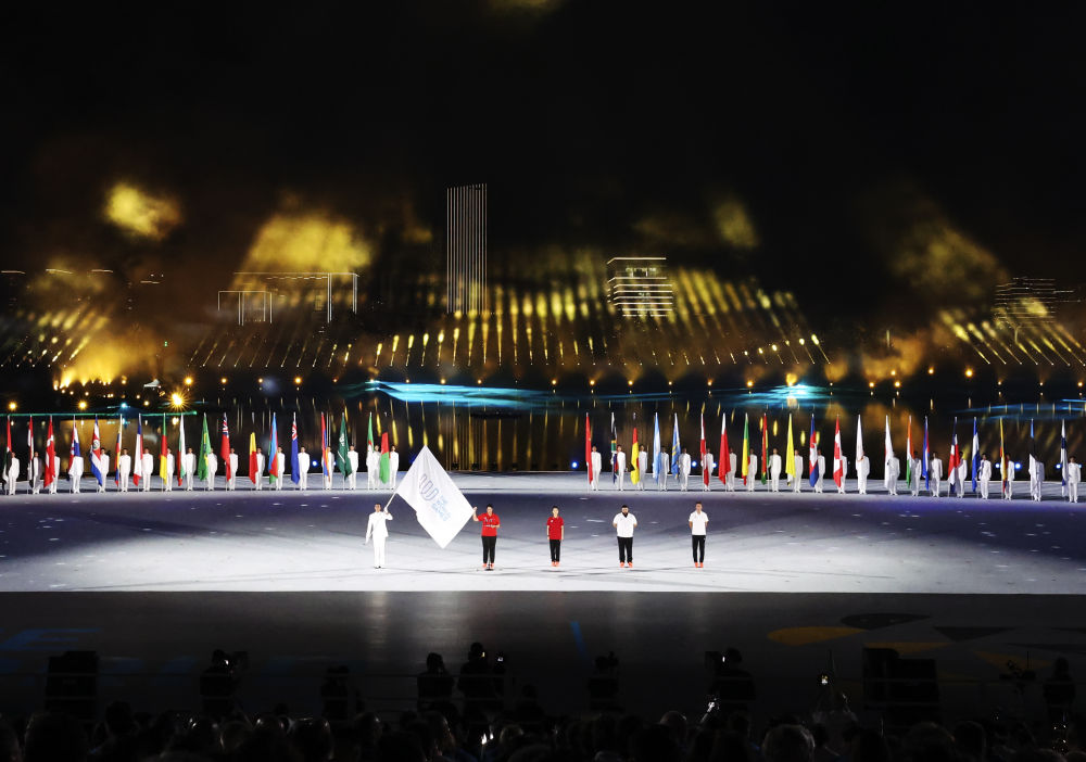 ↑中国体育代表团在开幕式上入场。新华社记者 鲍菲菲 摄