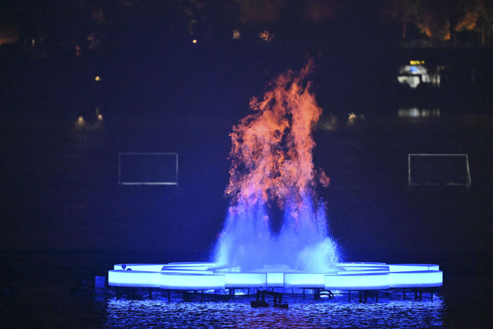 ↑这是开幕式现场的主火炬点燃仪式。新华社记者 贝赫 摄