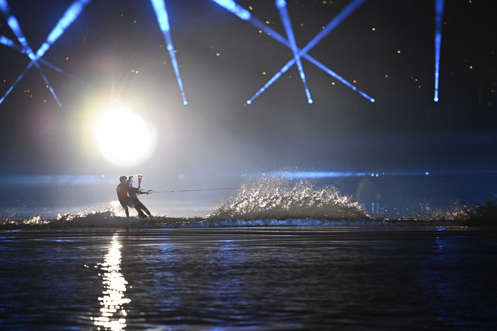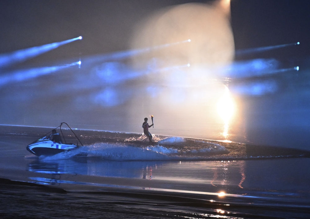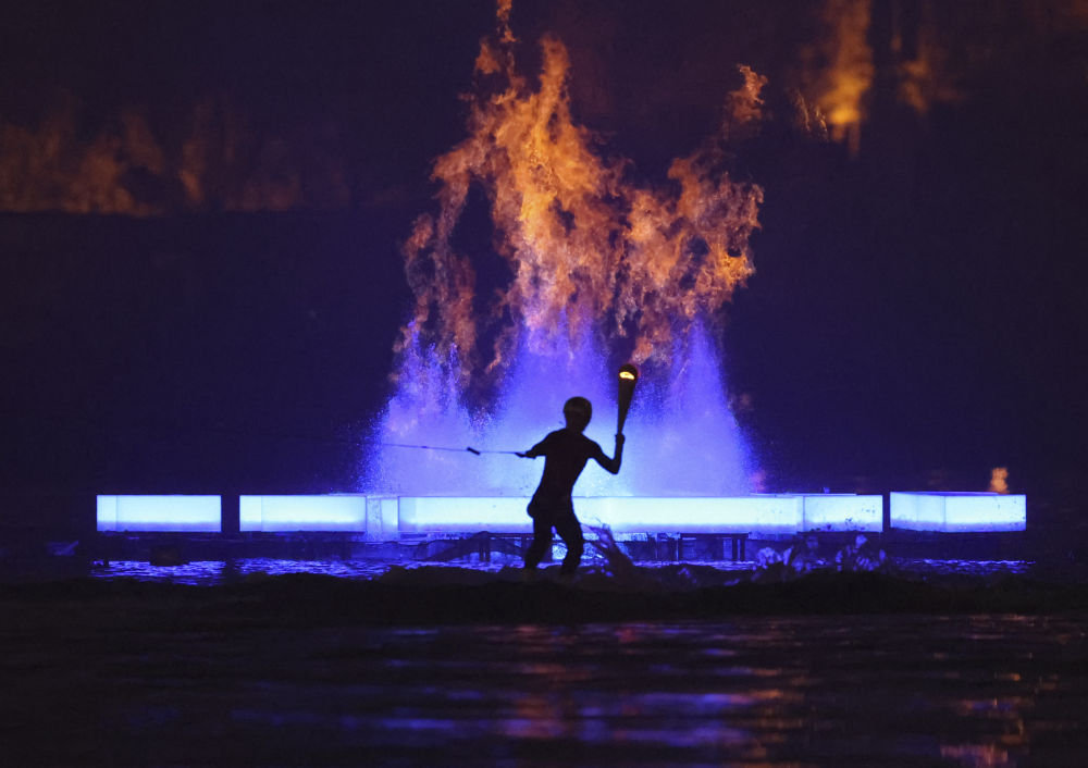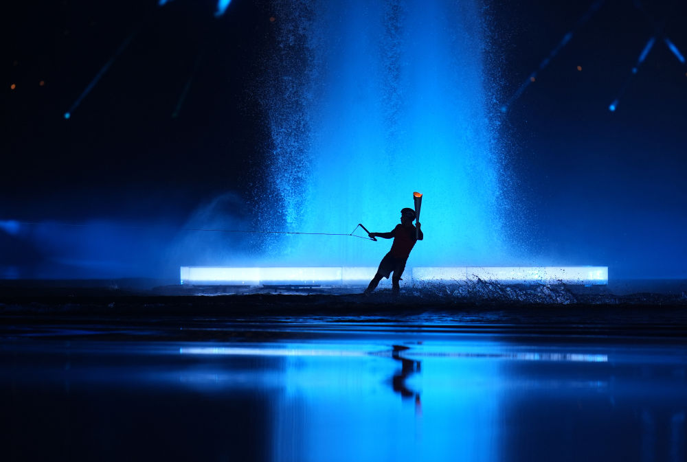 ↑点火手在开幕式上点燃主火炬。新华社记者 孙凡越 摄