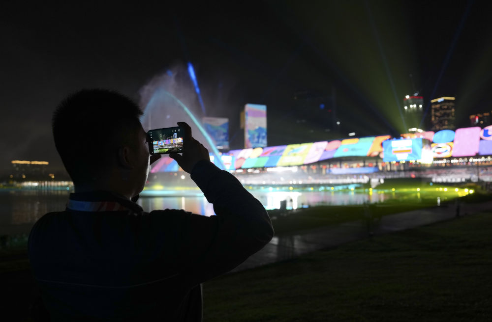 ↑这是开幕式上拍摄的“天府之檐”数字屋顶。 新华社记者 孙凡越 摄