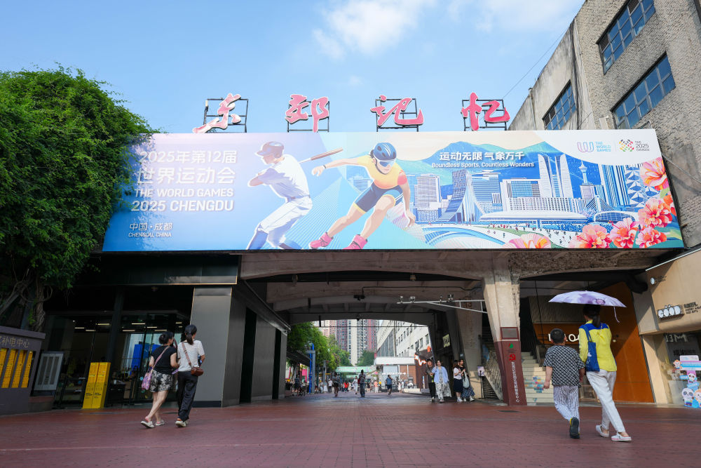 ↑这是8月7日在成都街头拍摄的成都世运会海报。新华社记者 谢剑飞 摄